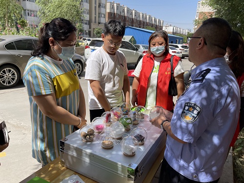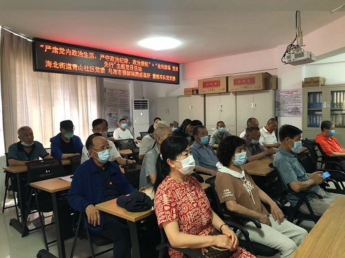 活动中,按照奏国歌、重温入党誓词、领诵党章党规(节选)、党员主动交纳党费、政策理论学习《关于新形势下党内政治生活的若干准则》,主题党日活动程序进行。接着,青山社区党委书记王慧新围绕“党内政治生活”的起源与发展,基本含义、重要意义,强调全体党员同志要按照集中治理的工作的相关部署要求,提高政治站位,对照“11严禁”等重点内容,深入开展自查自纠、狠抓落实,切实认清党内政治生活庸俗化交易化问题的现实危害,坚决把习近平总书记重要指示要求落到底、落到位。随后,青山社区党委书记王慧新一同与大家分享了习近平总书记参加十三届全国人大五次会议内蒙古代表团审议时重要讲话精神、学习体会收获和巩固深化集中治理成果的思路举措。最后,禁毒宣传工作人员下小区在休闲广场等人员集中的地方,设立悬挂禁毒宣传横幅的咨询台,给居民群众发放毒品预防教育知识手册等禁毒宣传资料,并通过通俗易懂的语言向往来居民讲解毒品知识、禁毒法律法规和识毒、拒毒、防毒小窍门,以及如何增强自我防范意识。同时现场告诫辖区居民禁毒从我做起,养成良好的生活习惯。