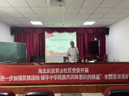 海北街道青山社区党委开展“进一步加强民族团结 铸牢中华民族共同体意识的根基”主题宣讲活动